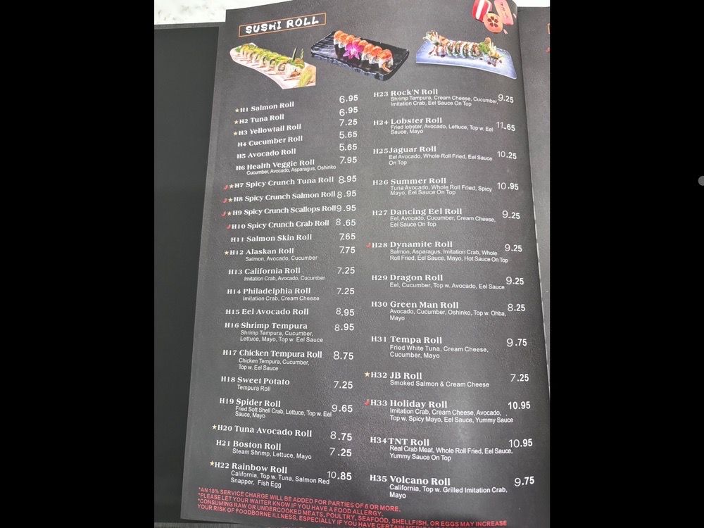 Shrimp tempura, cream cheese, fried red snapper, top with fried crab meat, spicy mayo, eel sauce.