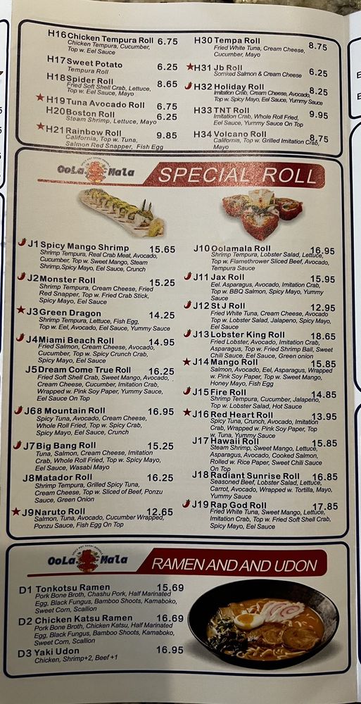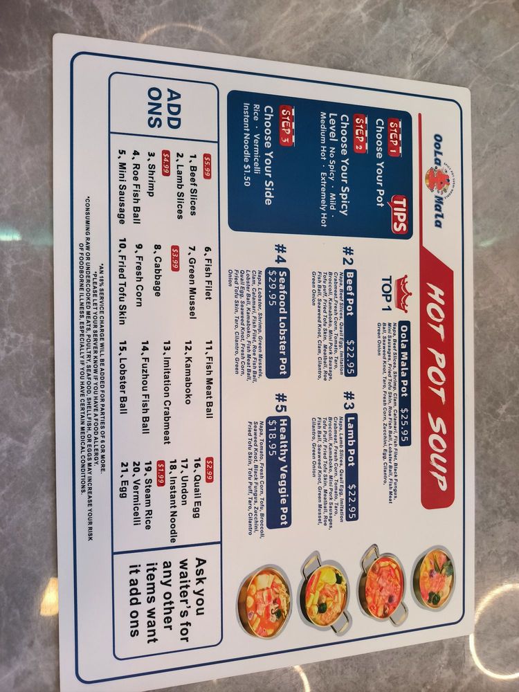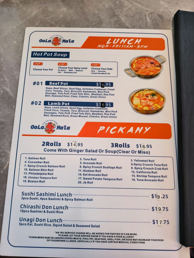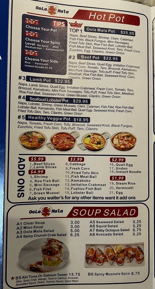 Oola Mala is a trendy and romantic sushi bar, hot pot, and noodle restaurant located in Saint Johns, FL. This hidden gem offers delivery, takeout, and reservations for their delicious and generous portions. The menu features a variety of lunch specials, seafood boils, soups, salads, and more. Customers rave about the friendly service, fun atmosphere, and fresh ingredients. Highlights include the Oola Mala Salad, Spicy Crunch Crab Salad, and Seafood Boil Combos. The Galaxy drink and lamb hot pot are also highly recommended. The restaurant's updated and clean interior, along with attentive staff, make for a memorable dining experience. Whether for a casual date night or a night out with friends, Oola Mala is sure to impress with its diverse menu and inviting ambiance.